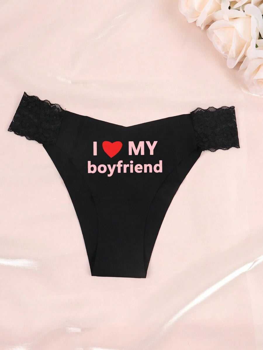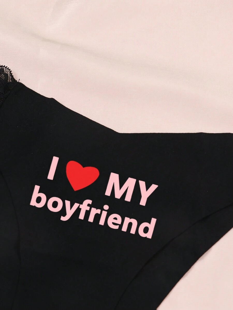 ✨ Women’s Seamless Low Waist Lace Panties – Heart Print “I Love My Boyfriend” Pattern Underwear