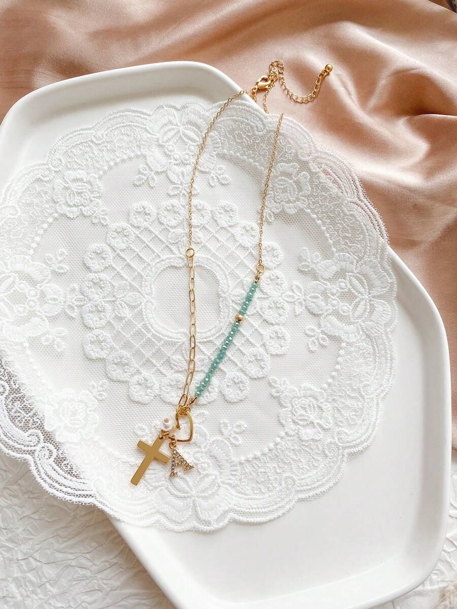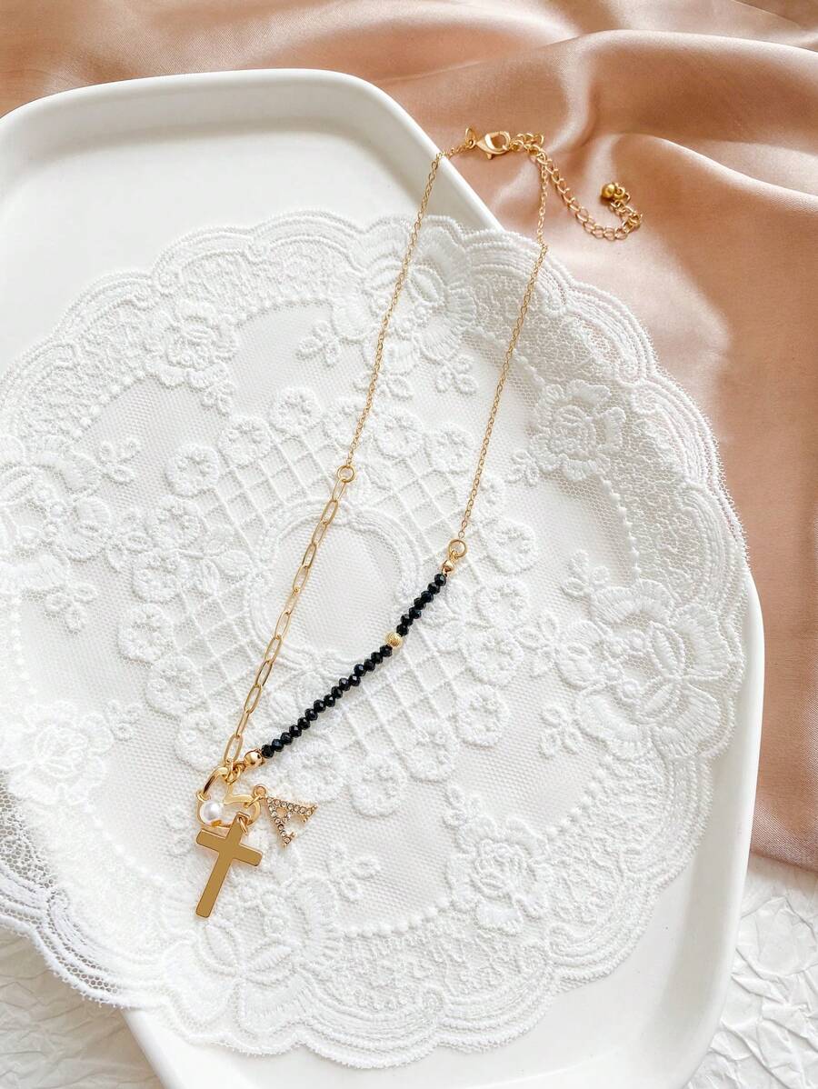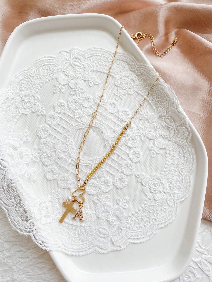 ✨ Minimalist Heart & Beaded Pendant Necklace – Fashion Metal, Pearl, Cross & Letter Charm Chain