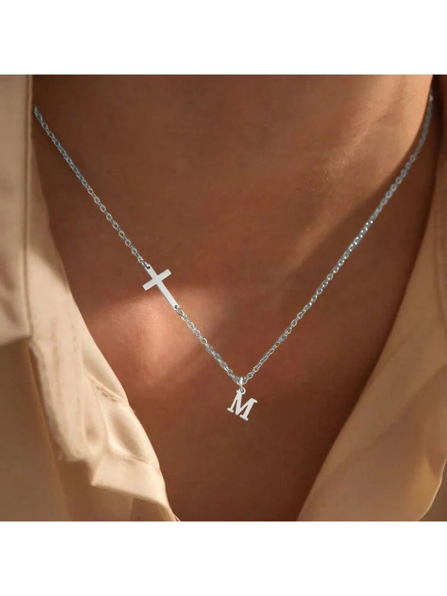✨ Simple Gold Cross Initial Pendant Necklace – Stainless Steel Chain Jewelry