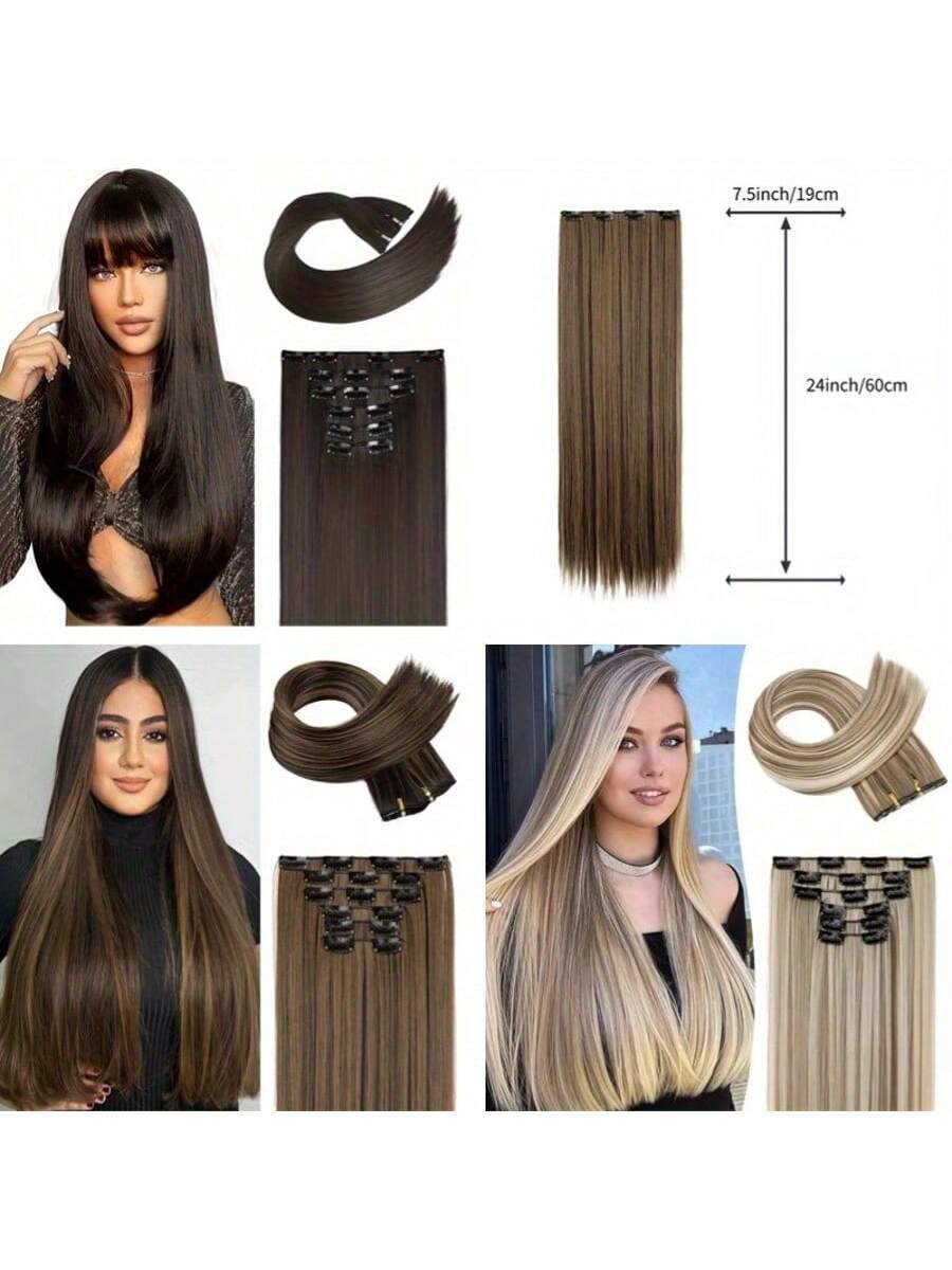 24-Inch European And American Women's Six-Piece Set Of Long Straight Hair Pieces To Increase Hair Volume Natural Invisible Wig Extensions