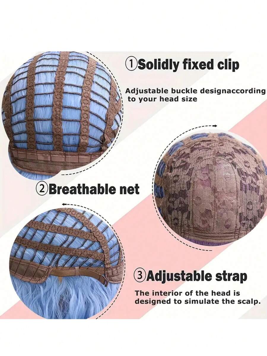 Add a bold, playful touch to your look with this 14" Short Blue Curly Wig with Bangs. Crafted from matte, heat-resistant synthetic fibers, this wig features elegant wavy curls and a breathable rose net cap for comfort. Perfect for holidays, cosplay, parties, or casual daily wear, it’s lightweight, easy to style, and adds a fun pop of color to your hairstyle.