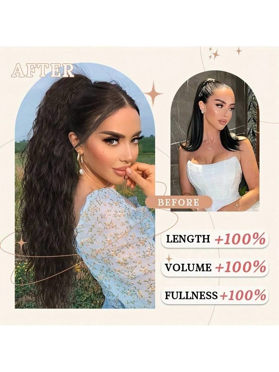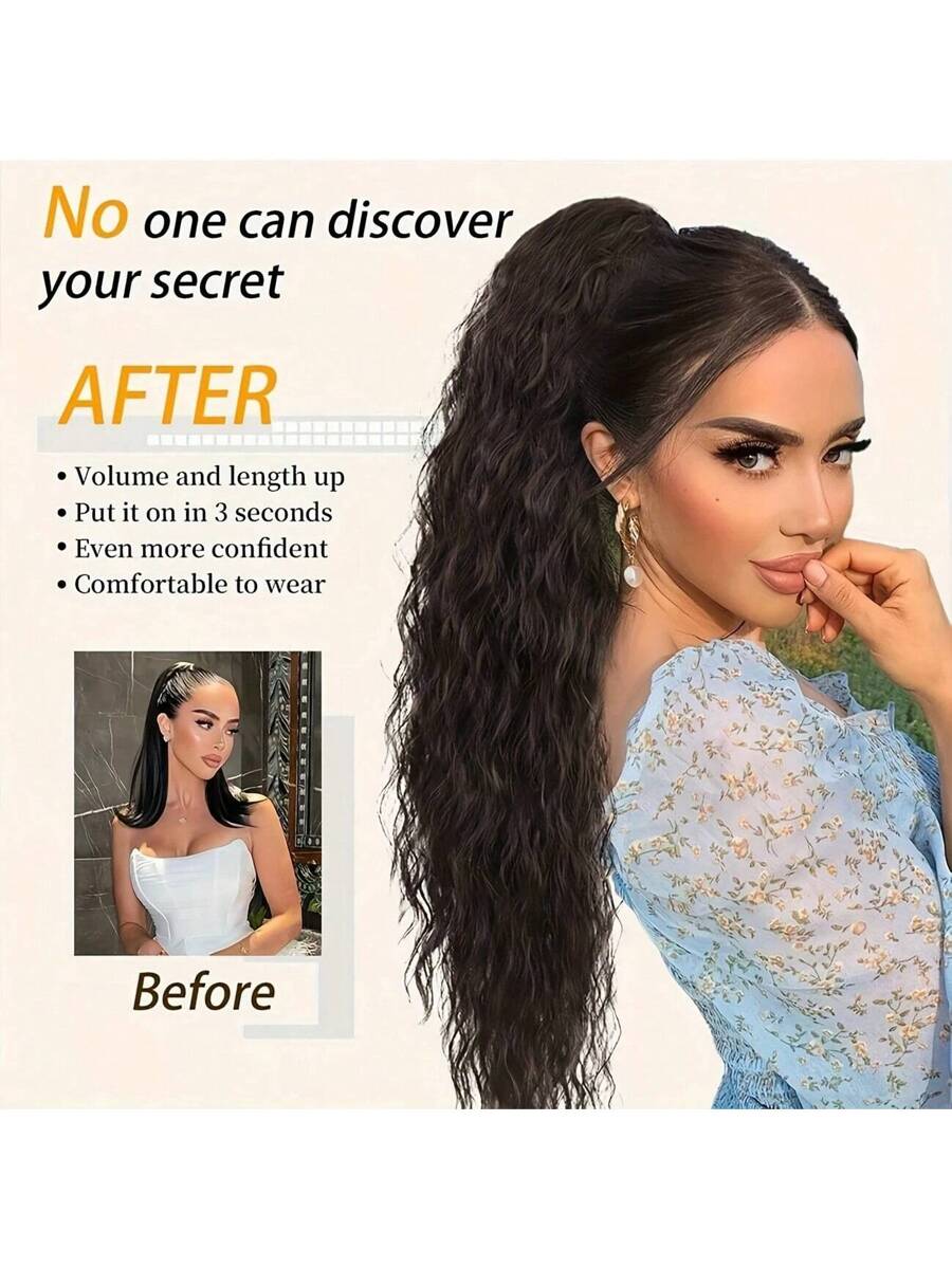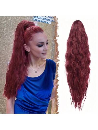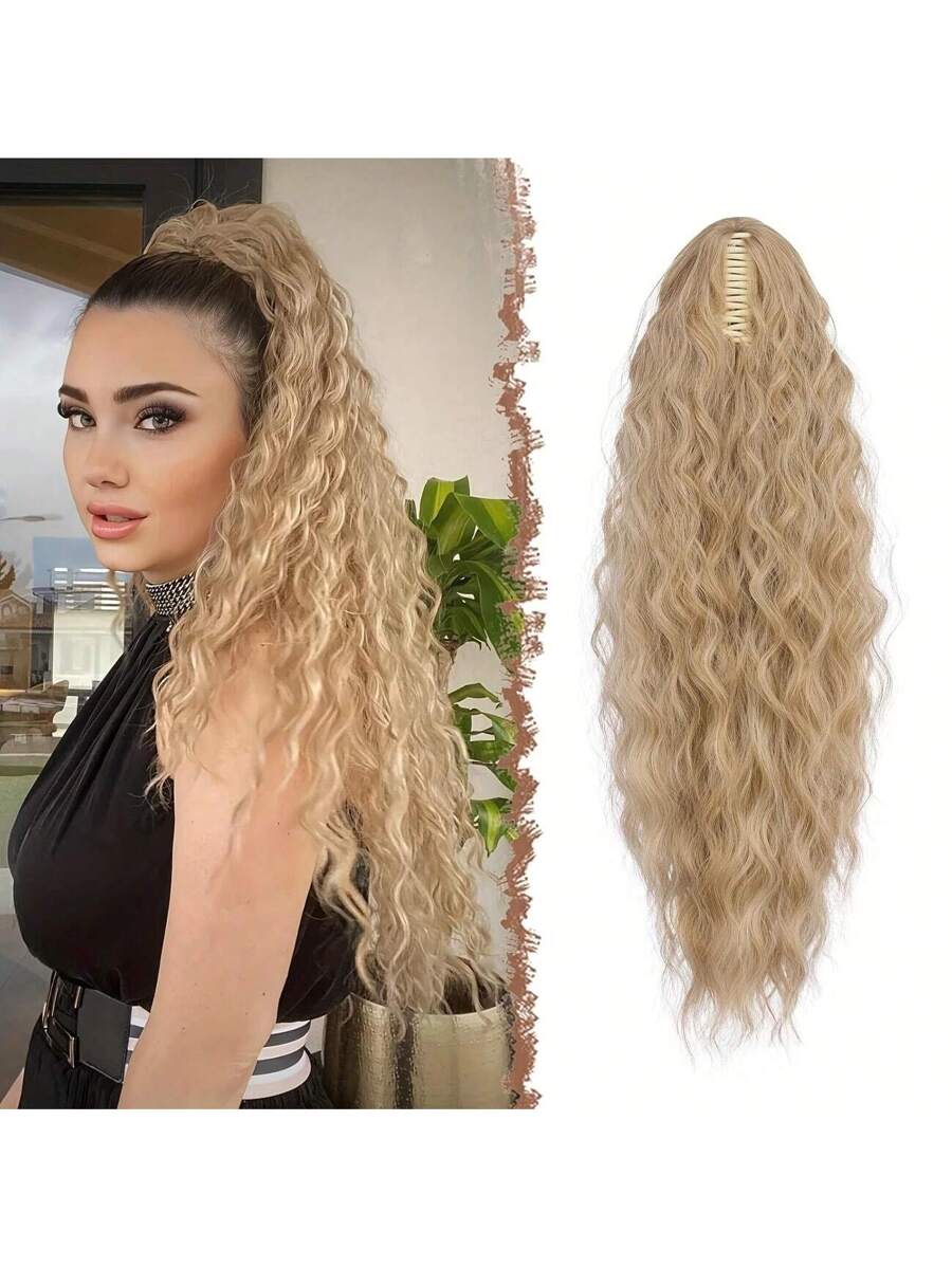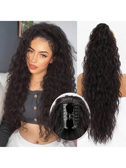 ✨ 22" Claw Clip Ponytail Extension – Water Wave Synthetic Hairpiece | Heat-Resistant Fiber