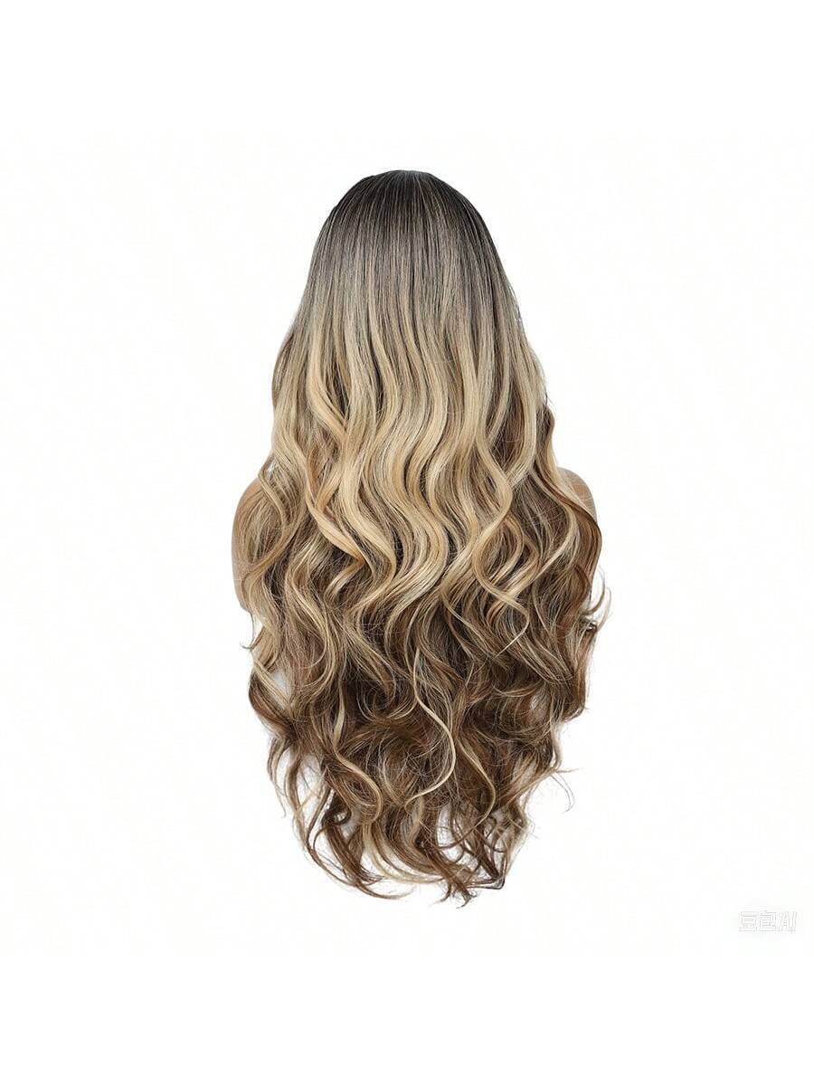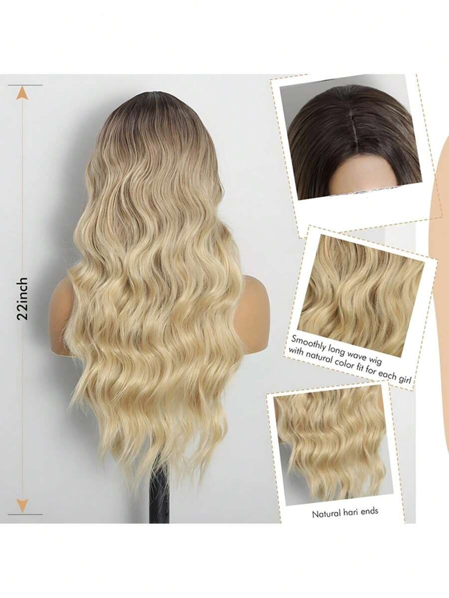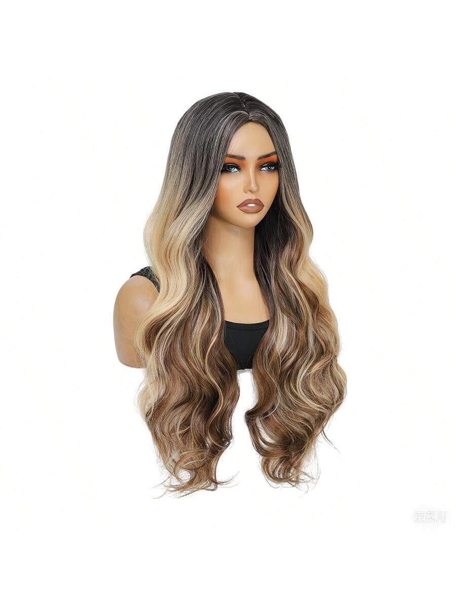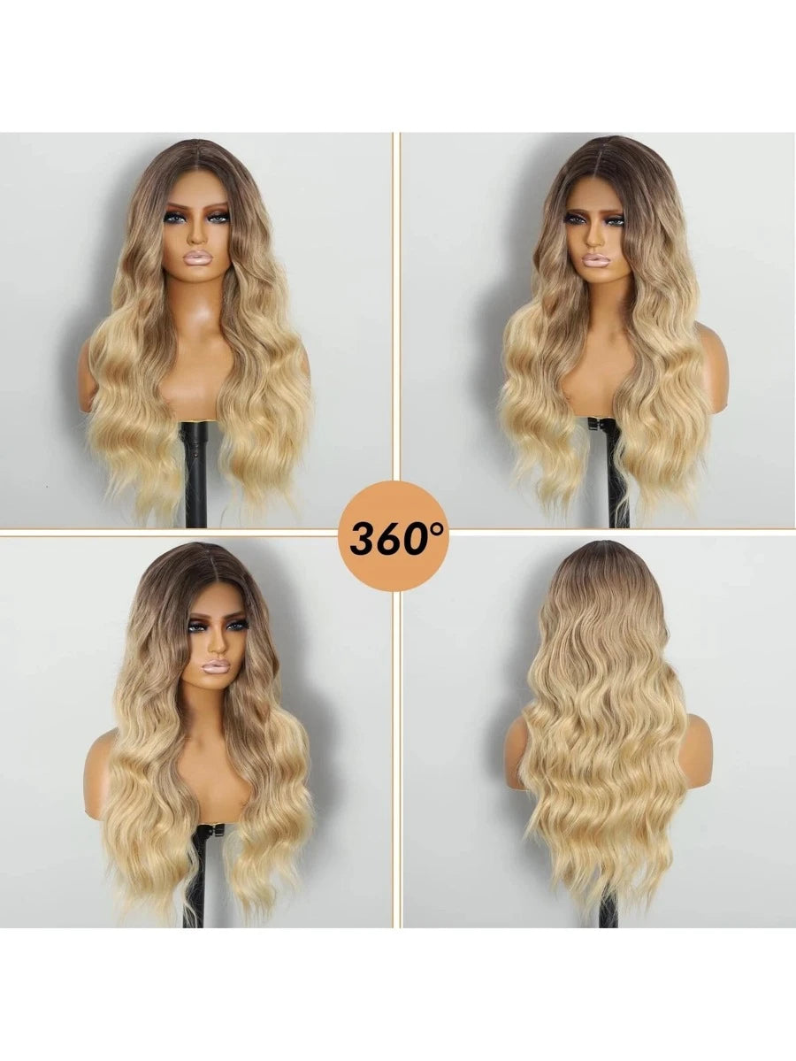✨ 22-Inch Long Body Wave Ombre Wig – Brown to Blonde Synthetic Heat-Resistant Hair