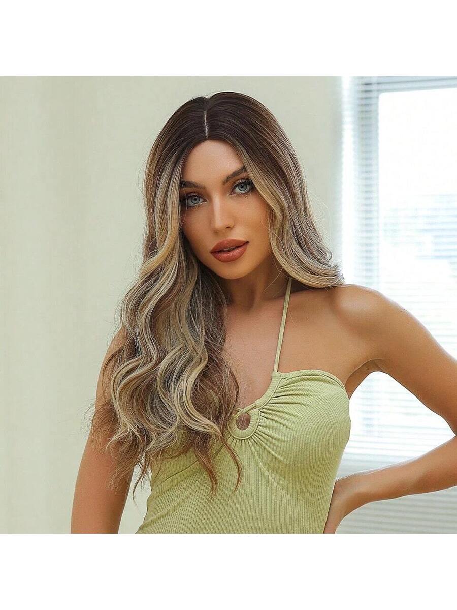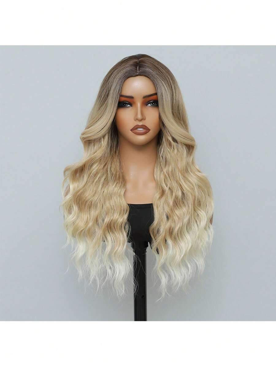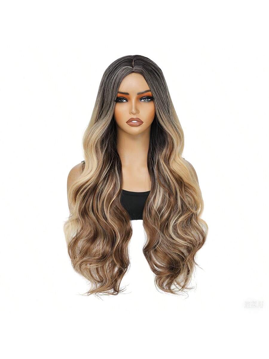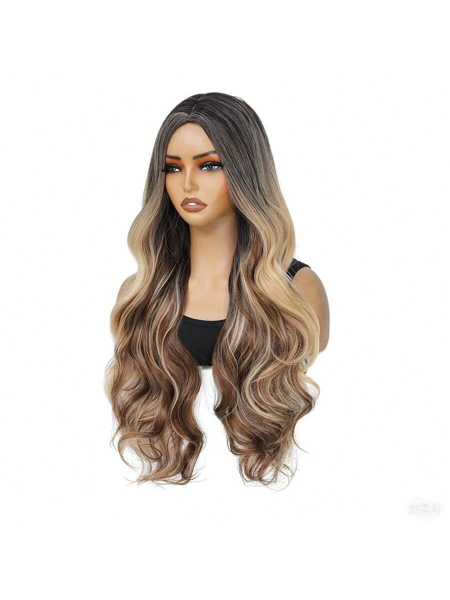 ✨ 22-Inch Long Body Wave Ombre Wig – Brown to Blonde Synthetic Heat-Resistant Hair