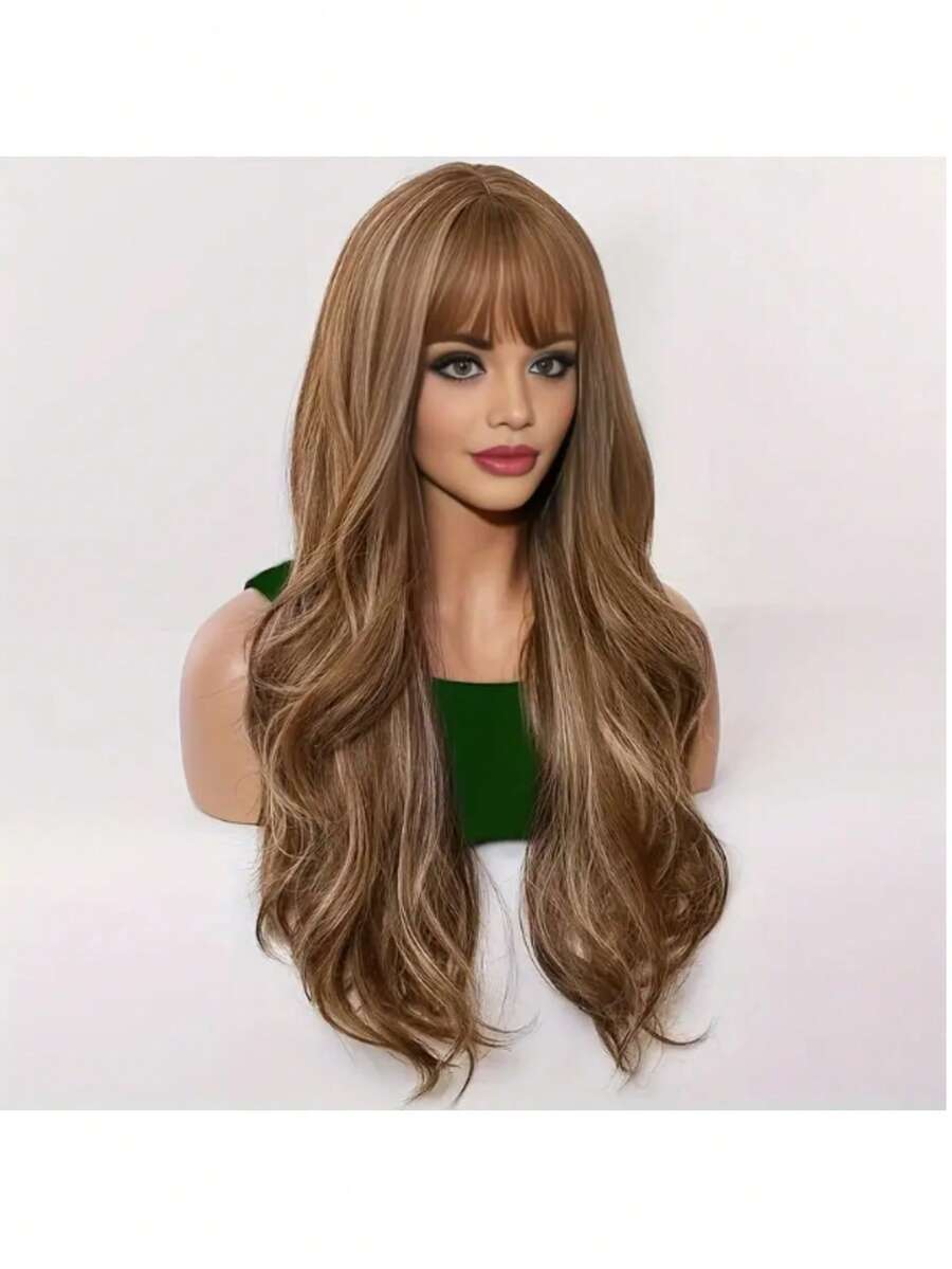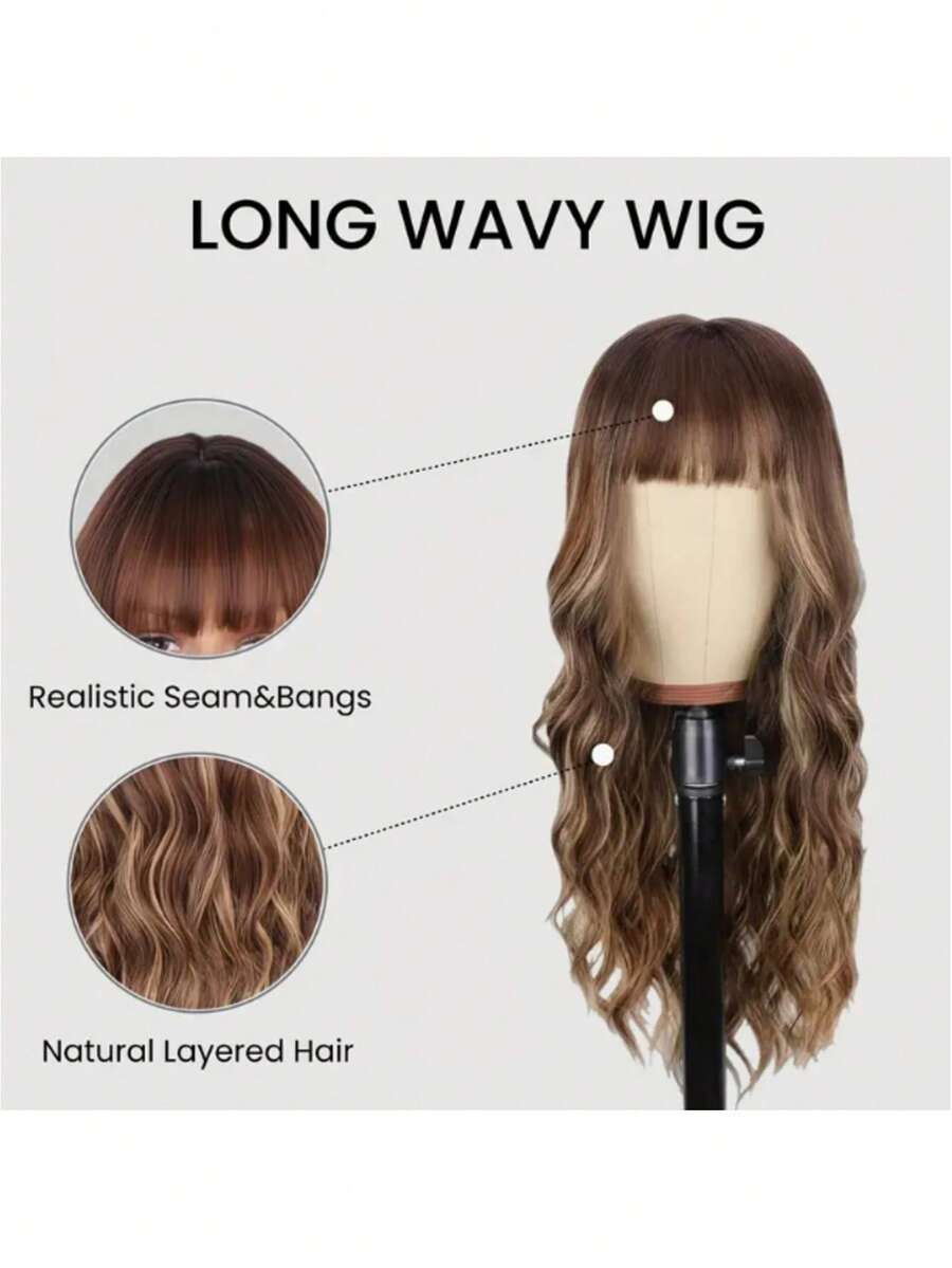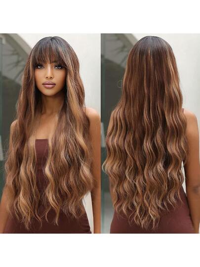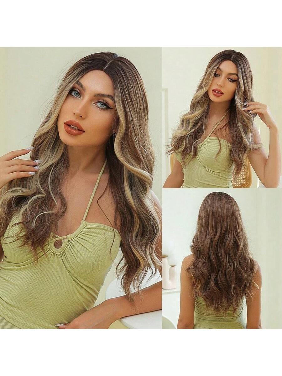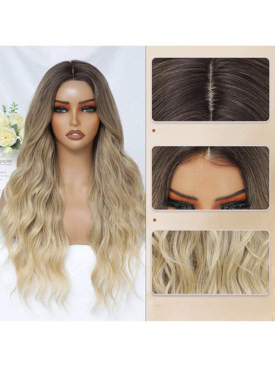 ✨ 22-Inch Long Body Wave Ombre Wig – Brown to Blonde Synthetic Heat-Resistant Hair