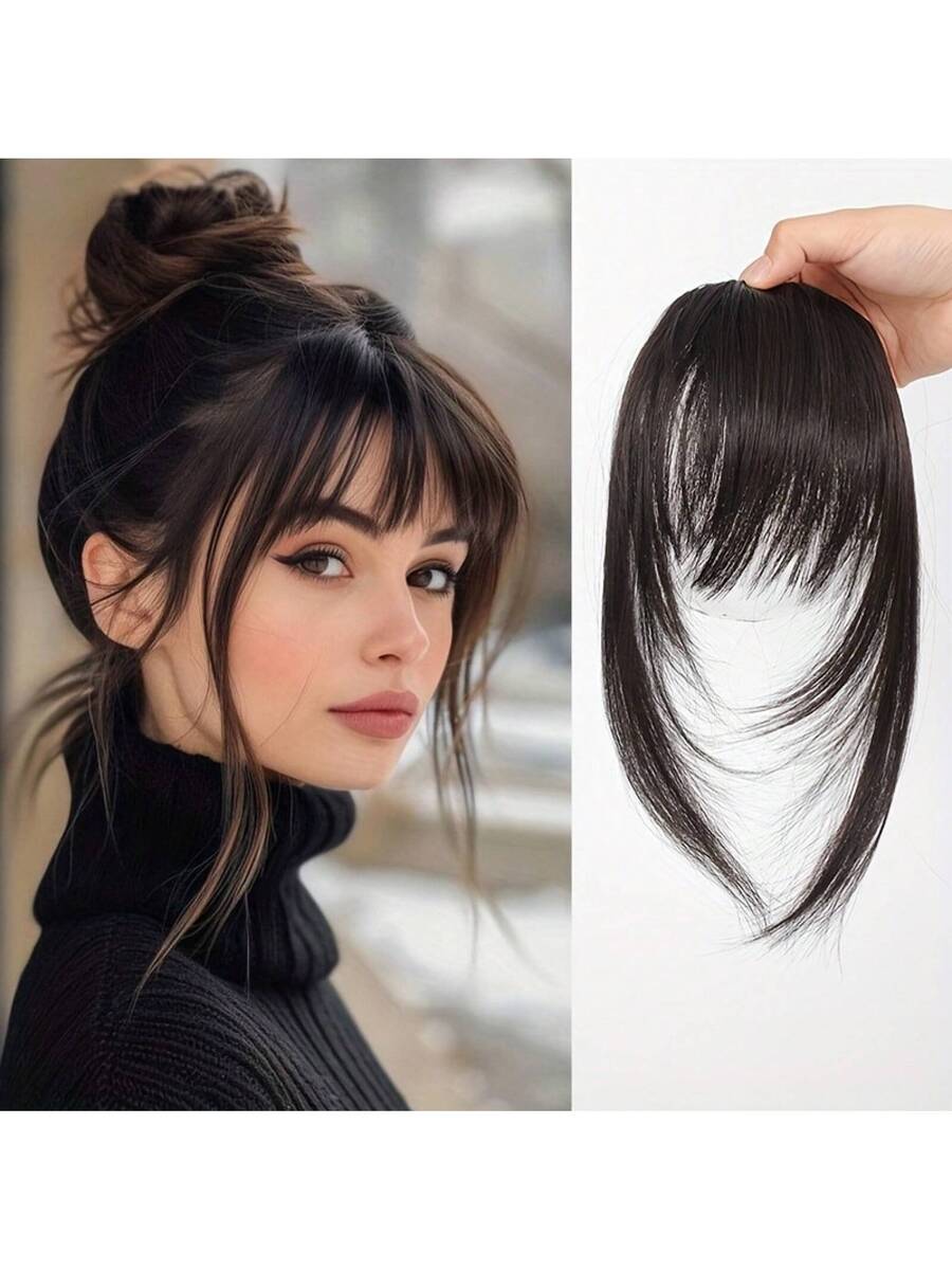 Women's Elegant Straight Synthetic Hair Extensions With Layered Bangs & Side-Swept Bangs - Natural-Looking Hairpiece