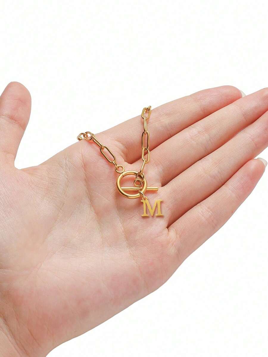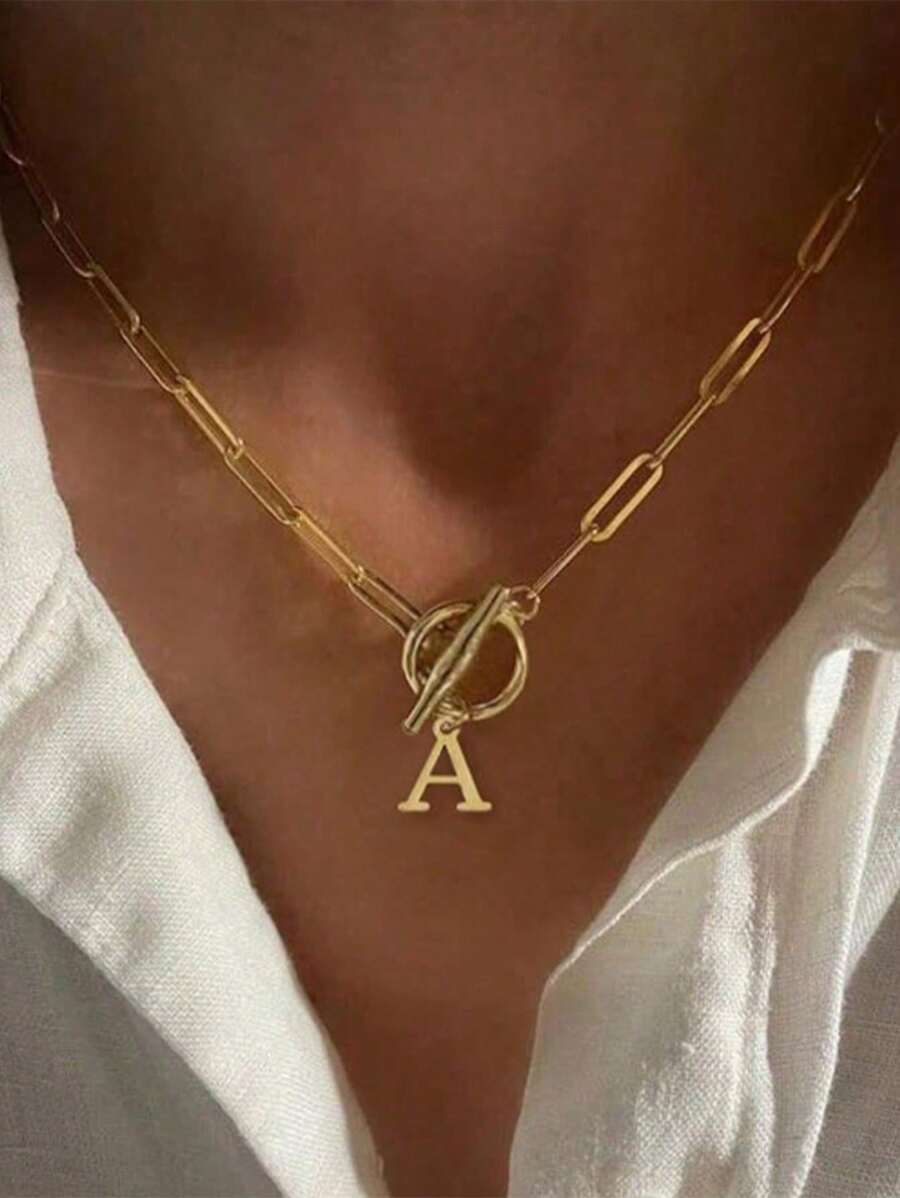 Letter Initial Necklace for Women – Gold Color CZ A-Z Alphabet Pendant, Thick OT Buckle Choker, Hip-Hop Jewelry