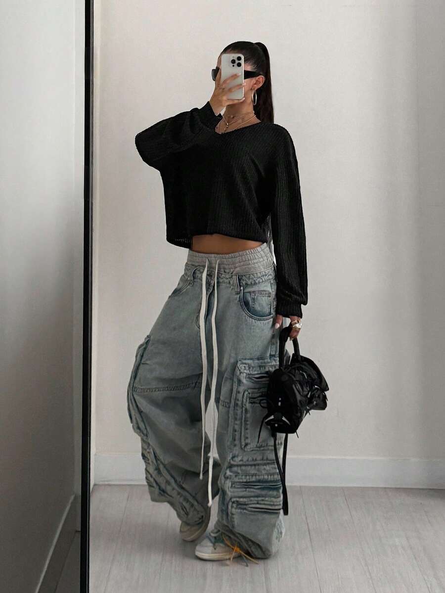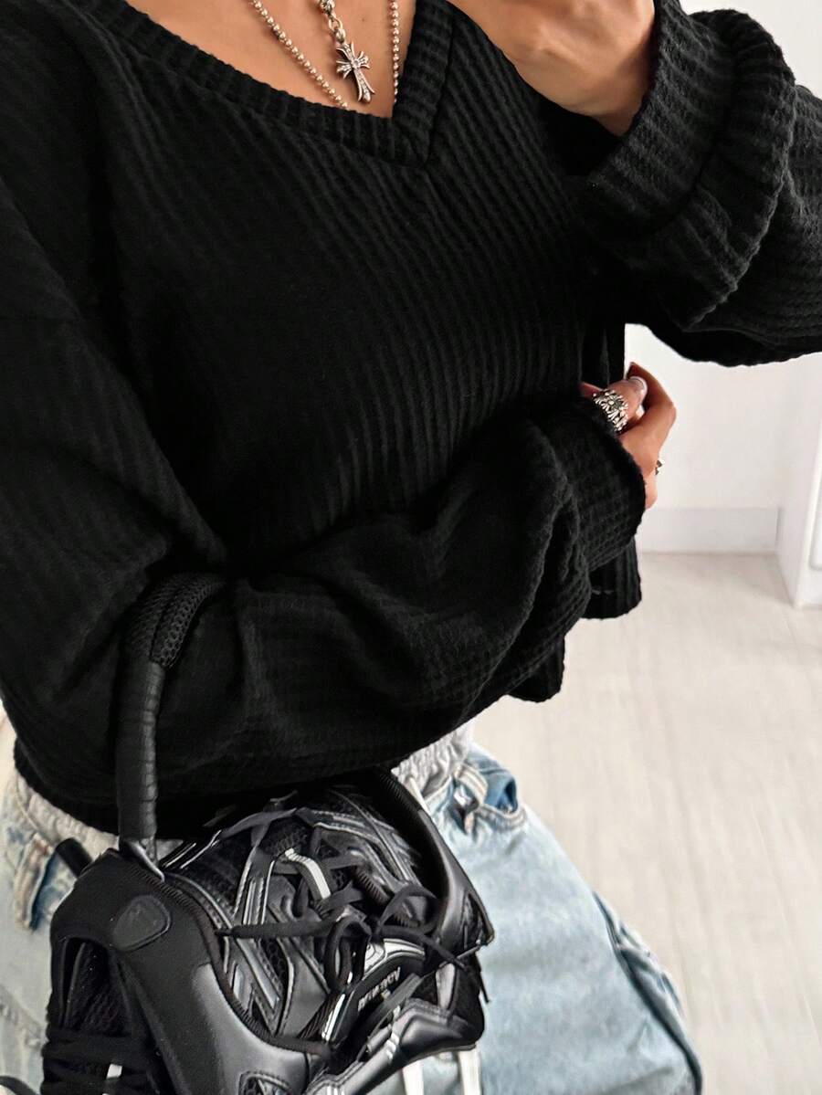 👚 V-neckline & dropped shoulders – relaxed, casual style