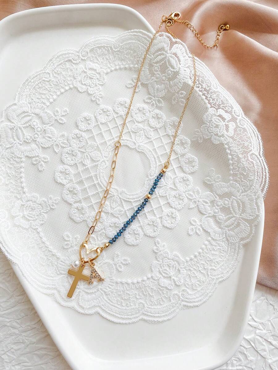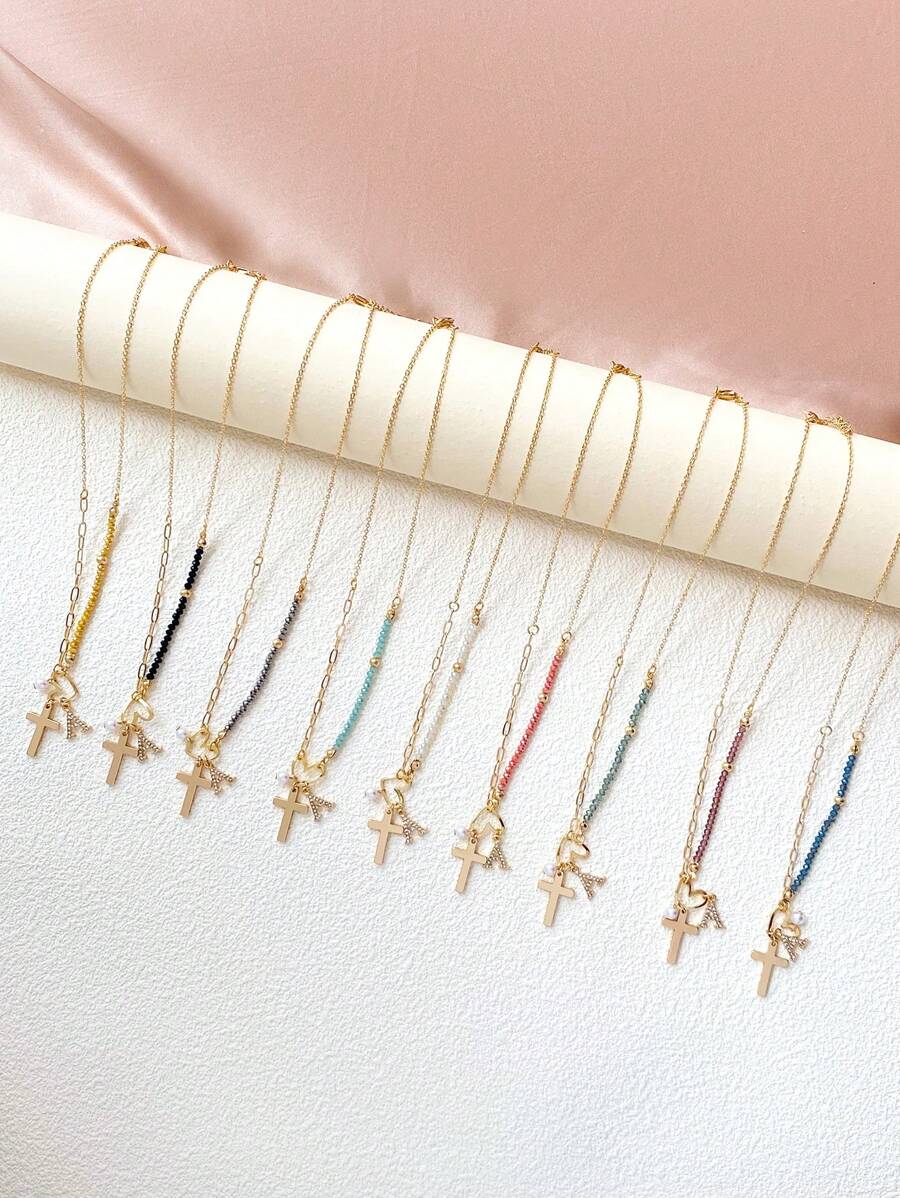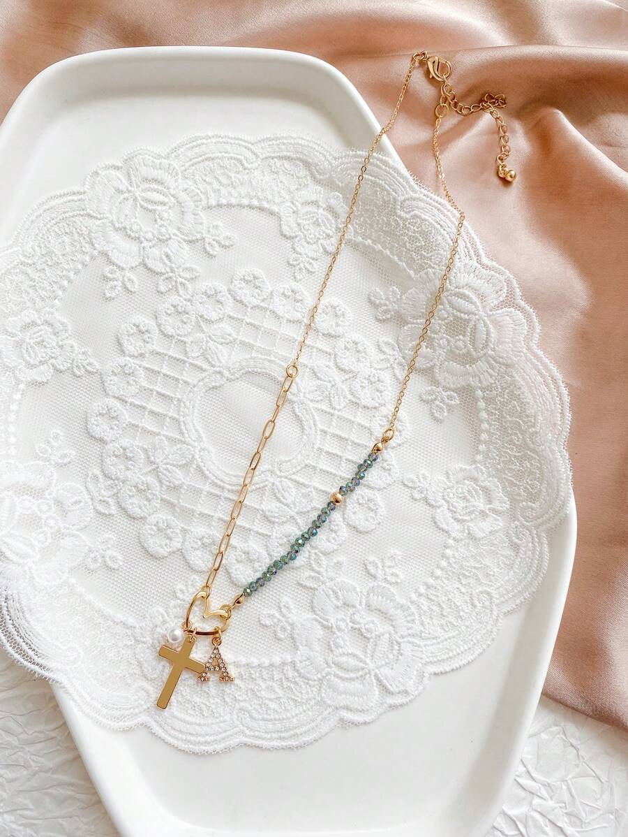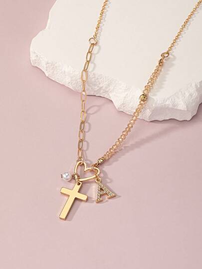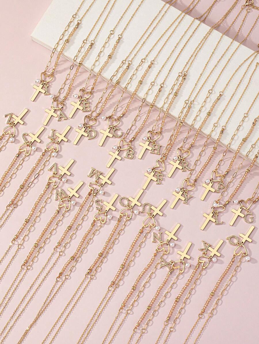 ✨ Minimalist Heart & Beaded Pendant Necklace – Fashion Metal, Pearl, Cross & Letter Charm Chain