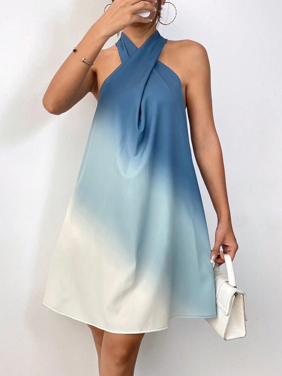 Firerie Spring Break Halter Neck Blue Gradient Dress,Pastel Dresses For Women