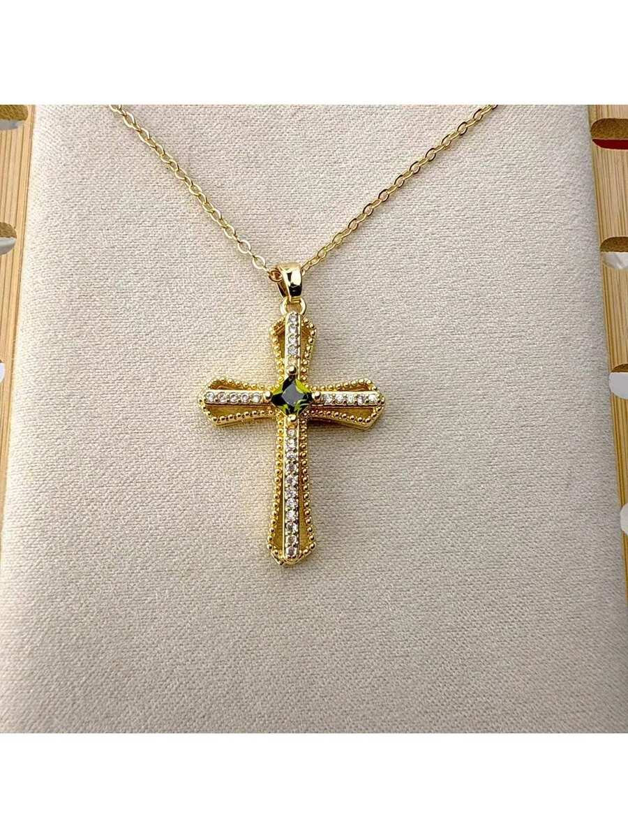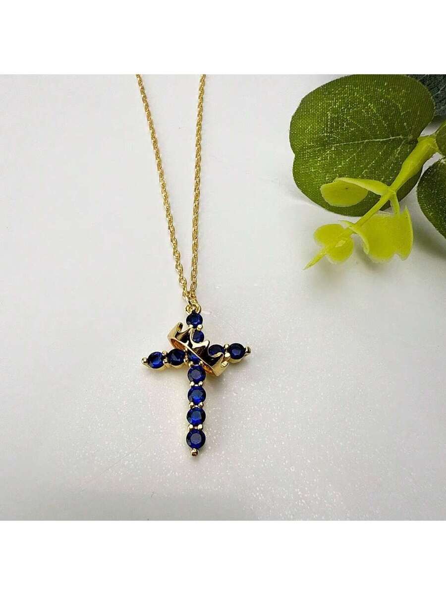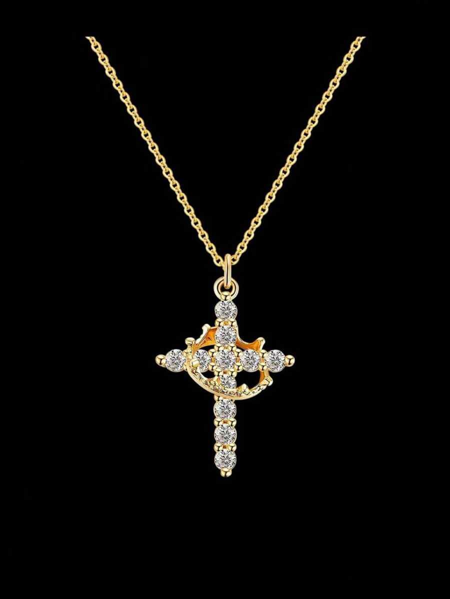 ✨ 14K Gold Plated Cross Necklace for Women – Crown Cross Pendant