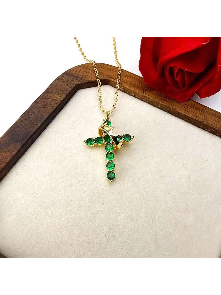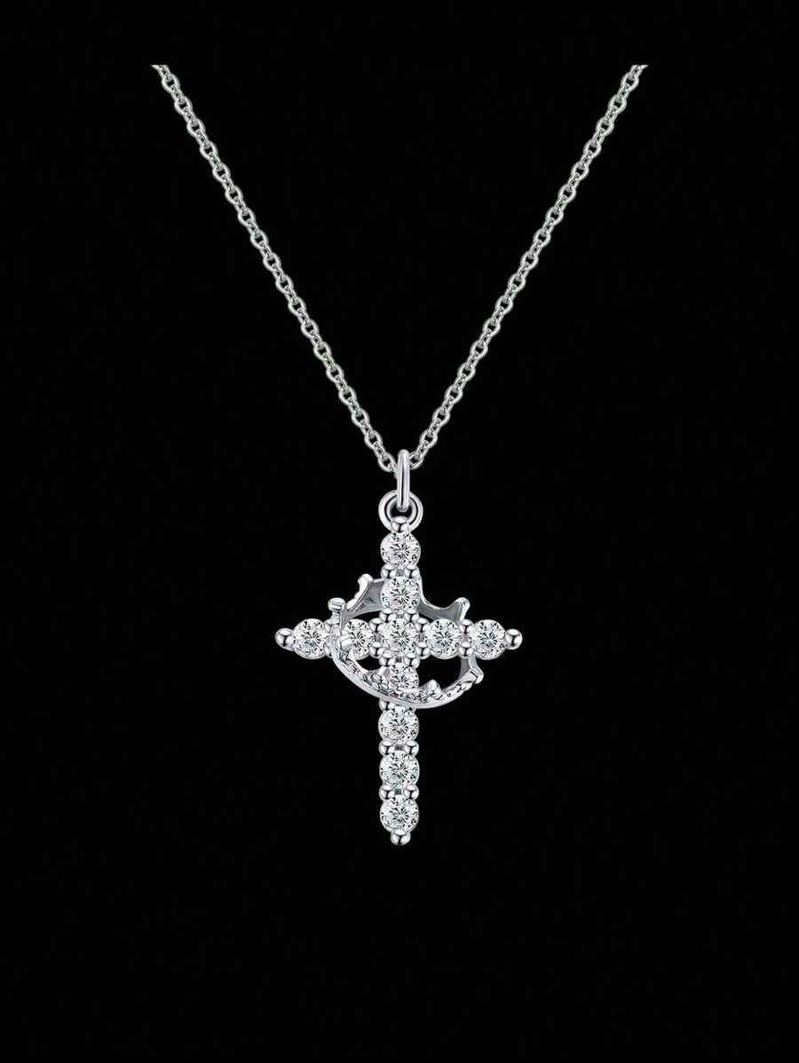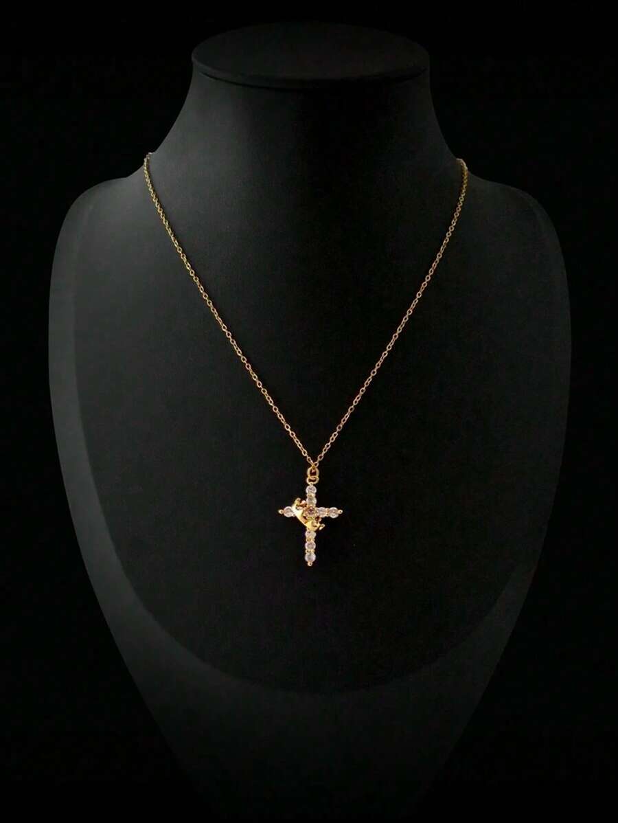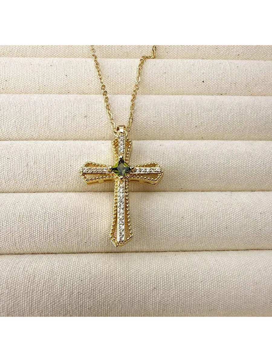 ✨ 14K Gold Plated Cross Necklace for Women – Crown Cross Pendant